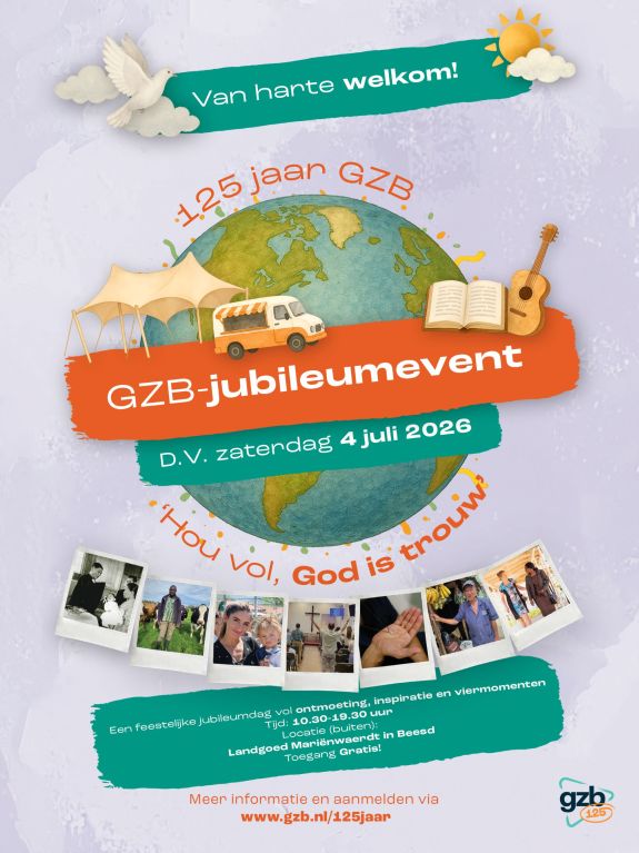 In 2026 bestaat de GZB 125 jaar! Onder het thema ‘Hou vol, God is trouw’ organiseren we een feestelijk jubileumevent. Vier je dit met ons mee?
