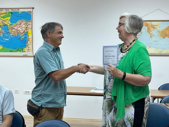 Anne-Marie Kool reikt de certificaten uit van het zomerprogramma voor PhD studenten aan het Osijek Doctoral Colloquium.