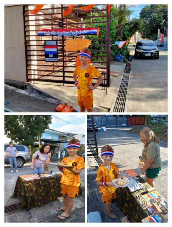 De lessen zijn niet altijd ver weg. Pas nog, gewoon in onze straat. Misha had bedacht dat hij een Nederlandse winkeltje wilde. Zomaar, één middagje. Na flink wat voorbereidingen kleurde het voor ons huis rood, wit, blauw en oranje. De klompen stonden klaar, Nederlandse tafereeltjes waren ingekleurd als ansichtkaart en een flinke stapel pannenkoeken was gebakken om verkocht te worden. En vergeet die enthousiaste 7-jarige Hollandse kerel niet! Maar…zoveel verkeer komt er niet door ons straatje en…zou iemand iets kopen…? Of zou dit een flinke teleurstelling worden? We hadden ons geen zorgen hoeven te maken. De buren links, buren rechts, buren van de overkant waren er al snel en zorgden ervoor dat de stapel pannenkoeken heel snel verdwenen was en zijn geldkistje gevuld. Want hier en daar stopten ze Misha zelfs nog wat extra Pesos toe. Misha helemaal blij en wij zijn dankbaar voor de lieve buren!Belang van de community