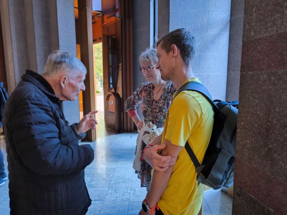Inmiddels zijn vrouw- en zoonlief in gesprek geraakt met een vertegenwoordiger van de parochie. Spreekt de schriele gestalte nu Duits? Dichterbij gekomen blijkt het Vlaams te zijn. Priester Koenraad van Herschaver, zeker midden 70, is blij zijn moederstaal te kunnen spreken.