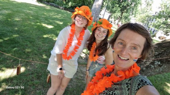 Op woensdagmiddag organiseerden we in het park een Nederlandse spelletjesmiddag voor kinderen. Denis: ,,Ik wil dat ze niet alleen in de kerk aan het werk zijn, maar ook in en voor de stad. Als we alleen maar onder ons blijven, is dat geen mooi getuigenis.” Gehuld in het oranje hadden we een Hollands spellencircuit voorbereid met onder meer koekhappen, zaklopen, spijkerpoepen en verhalenbingo. Enthousiaste kinderen, ouders en opa’s en oma’s, die actief aan de spelletjes deelnamen. Op het moment van het goûter, het moment van drinken en lekkers, werden er crêpes, stroopwafels en roze koeken met een Nederlands vlaggetje gedeeld. Die werden goed ontvangen. Ook klonken er Hollandse kinderliedjes.