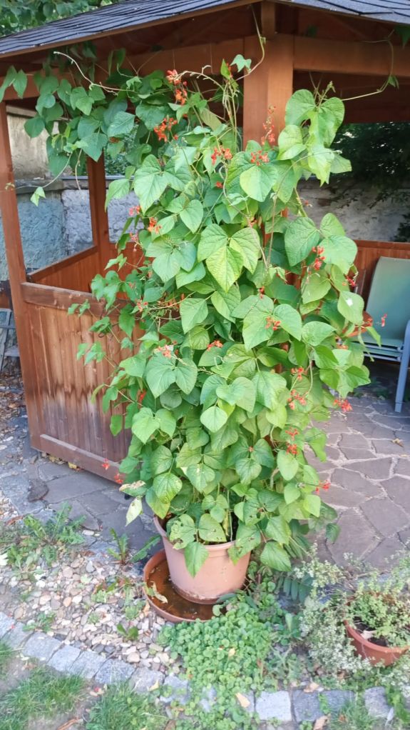 Inmiddels staat de genade uit mijn tuintje in bloei. Elke keer als ik de plant water geef, van de prachtige rode bloemen geniet en langzamerhand de peultjes zie groeien, word ik herinnerd aan wat genade is. Niet verdiend, maar toch gekregen. Straks kan ik er van oogsten. En uitdelen. Want genade houd je niet voor jezelf, dat deel je als het mogelijk is ook uit. Wat een overpeinzingen hè, en dat allemaal door een handje boontjes.