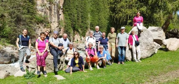 De volgende dag hebben we weer verder reizend volop genoten van prachtig natuurschoon, veelkleurige rotsen en adembenemende uitzichten. De onderlinge sfeer is hartverwarmend, maar we hebben ook onze afkoelingsmomenten. Zo heeft een deel van de groep zich uitgesloofd door een duik in een koud meer te nemen. Na deze letterlijke onderdompeling hebben we ons ‘s avond figuurlijk ondergedompeld in de cultuur van het land. Ons diner hebben we genoten in een traditionele yurt waarbij de serveersters rondliepen in traditionele kleding. Daarna werden we verrast door een muzikale familie die met verschillende soorten lokale muziekinstrumenten een cultureel hoogstandje ten gehore brachten. Het was bewonderenswaardig hoe goed deze muziekinstrumenten van grootvader tot kleindochter werd bespeeld. Daarna konden we genieten van onze nachtrust, eveneens in een traditionele yurt.