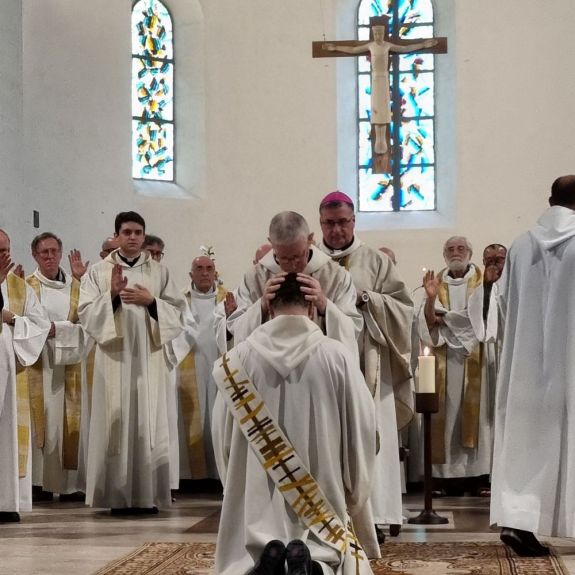 Een indrukwekkend moment: een reeks van priesters die hem de handen oplegt, en