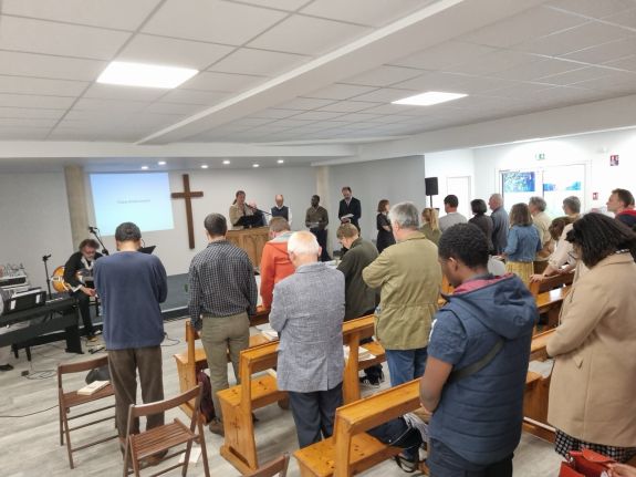 Na jaren van samenkomsten in tijdelijke ruimtes heeft de Unepref geloofsgemeenschap van Bordeaux-Cenon eindelijk een vaste plaats om ‘thuis’ te noemen. Onlangs werd het nieuwe kerkgebouw ingewijd, in een ceremonie die zowel plechtig als feestelijk was. De eerste kerkdienst in het nieuwe gebouw was een emotioneel moment voor velen. Het was mooi om met de (oud-)gemeenteleden en vele genodigden samen te komen. De dienst begon met het zingen van Gloire à Dieu, Gloire à Dieu… Réjouis-toi, de eer komt toe aan God, verheug je. Predikant Juarez Teodoro opende de dienst met gebed en een groet aan alle aanwezigen. Twee getuigenissen volgden, waarin de geschiedenis van deze kerkgemeenschap gedeeld werd.