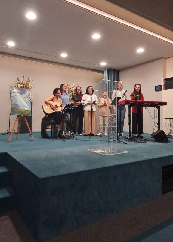 Vrijdagavond was het VITA-vrouwenevent. Het was bijzonder indrukwekkend hoe één van de Albanese vrouwen een schilderij had gemaakt bij Psalm 27 en daar een eigen lied bij had geschreven. Vooral de woorden "Al ben je door vader en moeder verlaten, God kijkt naar je om" maakten diepe indruk. Dit raakte extra, omdat Jona in haar getuigenis vertelde hoe ze, op 21-jarige leeftijd, haar ouders had verloren en ondanks dat verdriet vrede vond in haar hart, omdat ze bleef vertrouwen op God. Haar boodschap was duidelijk: "Deel je zorgen en strijd met elkaar, en bid samen." Ze moedigde ons aan om kleine dingen met grote liefde te doen.