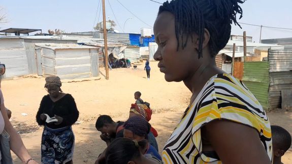 ‘Ndapanda, ga je mee naar de Bijbelstudie?’ Ik sta op het droge zand voor een golfplaten bar in de sloppenwijk.